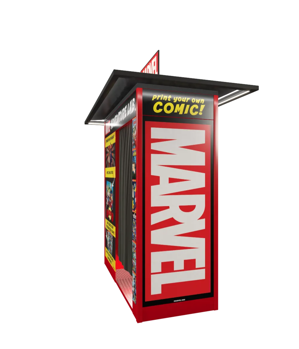 Customers choose from a wide range of frames inspired by comic panels and covers which are then personalized with their own comic photo. The customer’s photo is transformed into a comic style effect and also integrated perfectly within the selected Marvel Comic Adventure. The entire process of taking a photo is fun and immersed within the Marvel Universe! Users are thrilled to capture a fun moment in the photobooth and cherish the photo as a keepsake.